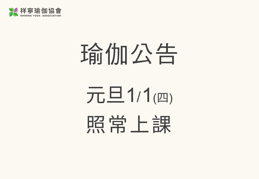瑜伽課表|老師請假公告 ~ 元旦1/1照常上課