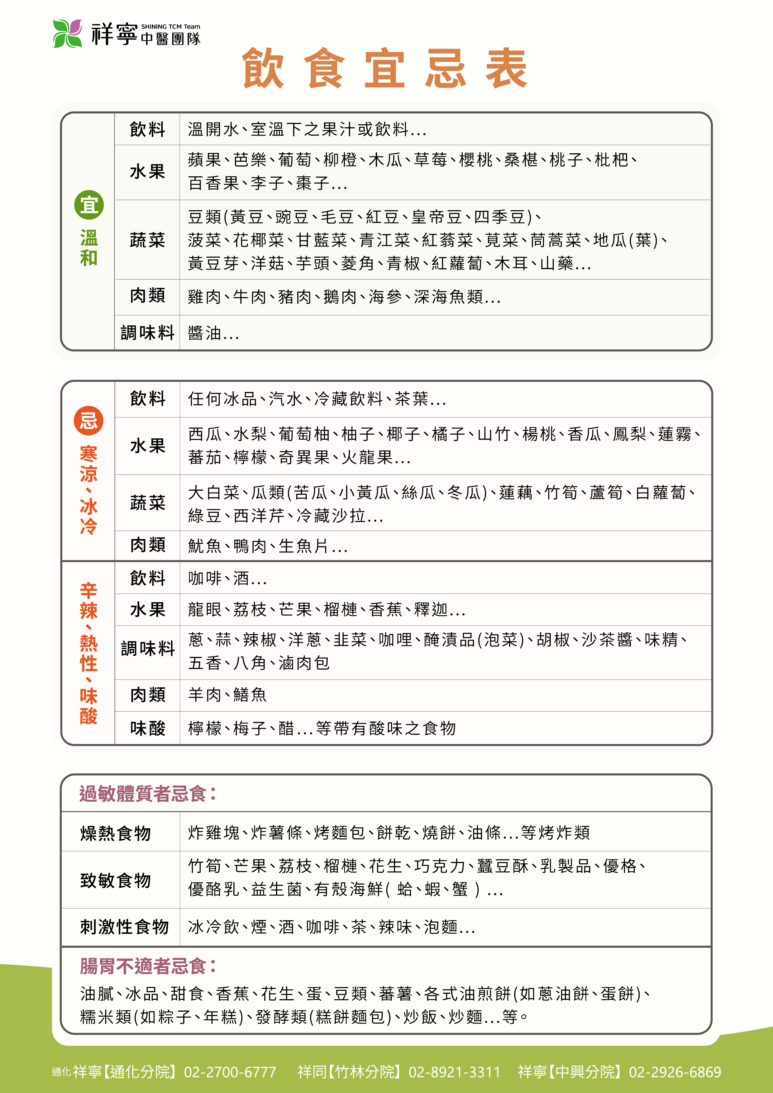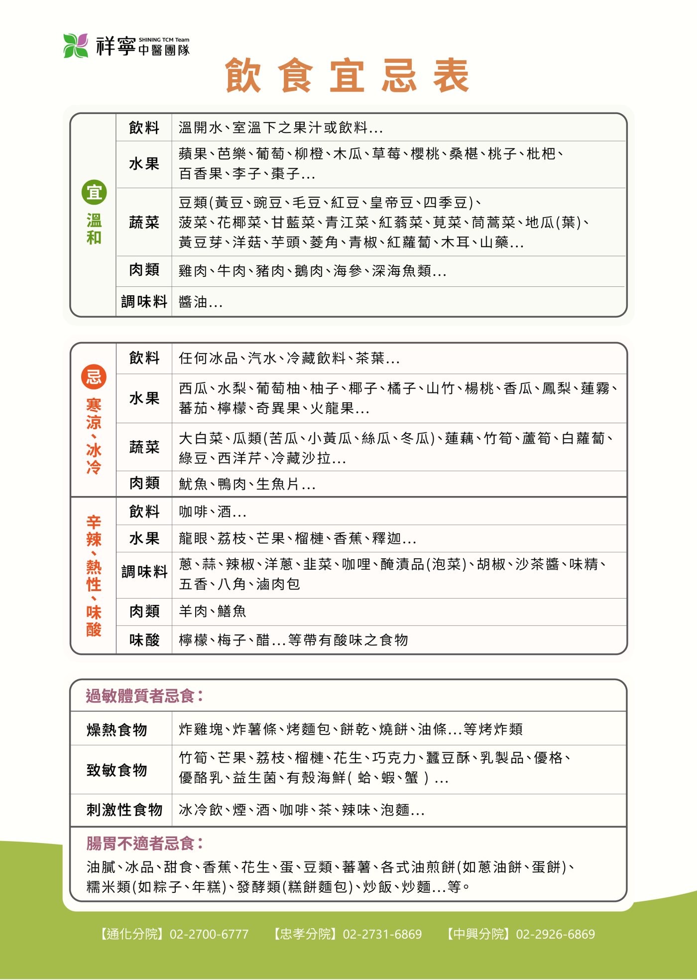 【飲食宜忌表】