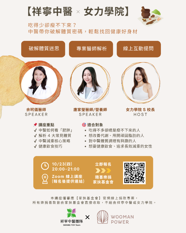 【祥寧中醫 × 女力學院】中醫減重線上講座報名📩