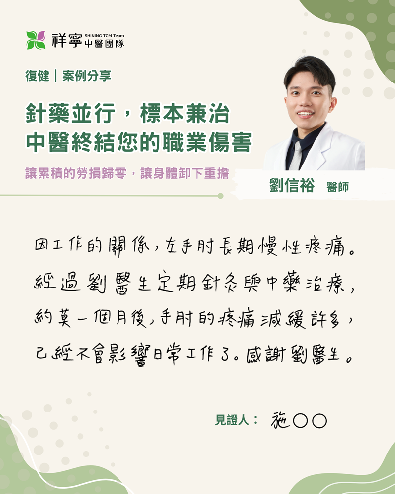患者因工作緣故,左手肘出現慢性疼痛困擾💢