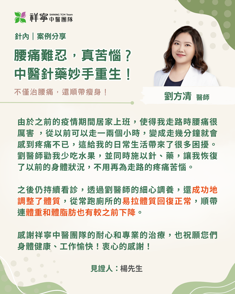 讓楊先生迅速擺脫腰痛困擾