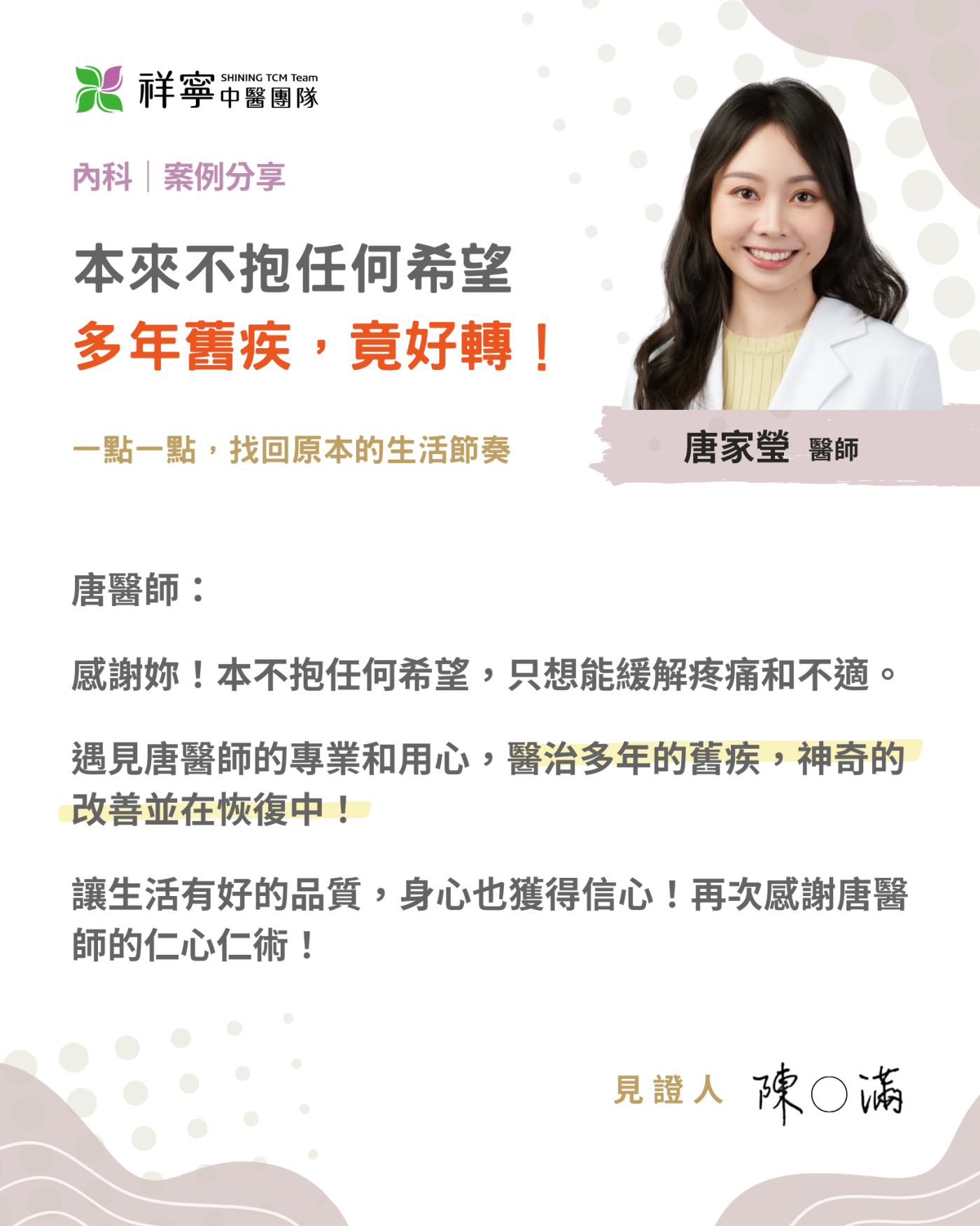 但在唐家瑩醫師的專業診療下