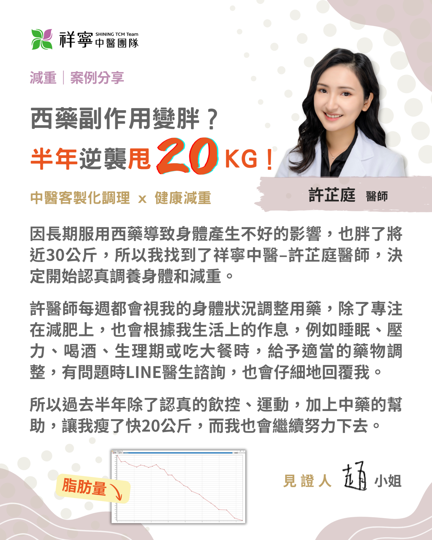 患者在半年內成功減重 20 公斤!💪