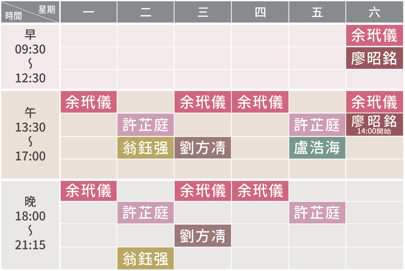 - 預約時間是就診時間的概抓參考值,實際上依每位來賓的醫療處置情況,看診進度會有所不同。醫師們都會盡力控制時間,尚祈諒解。