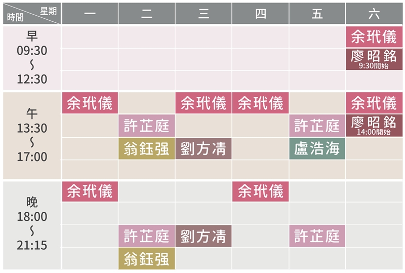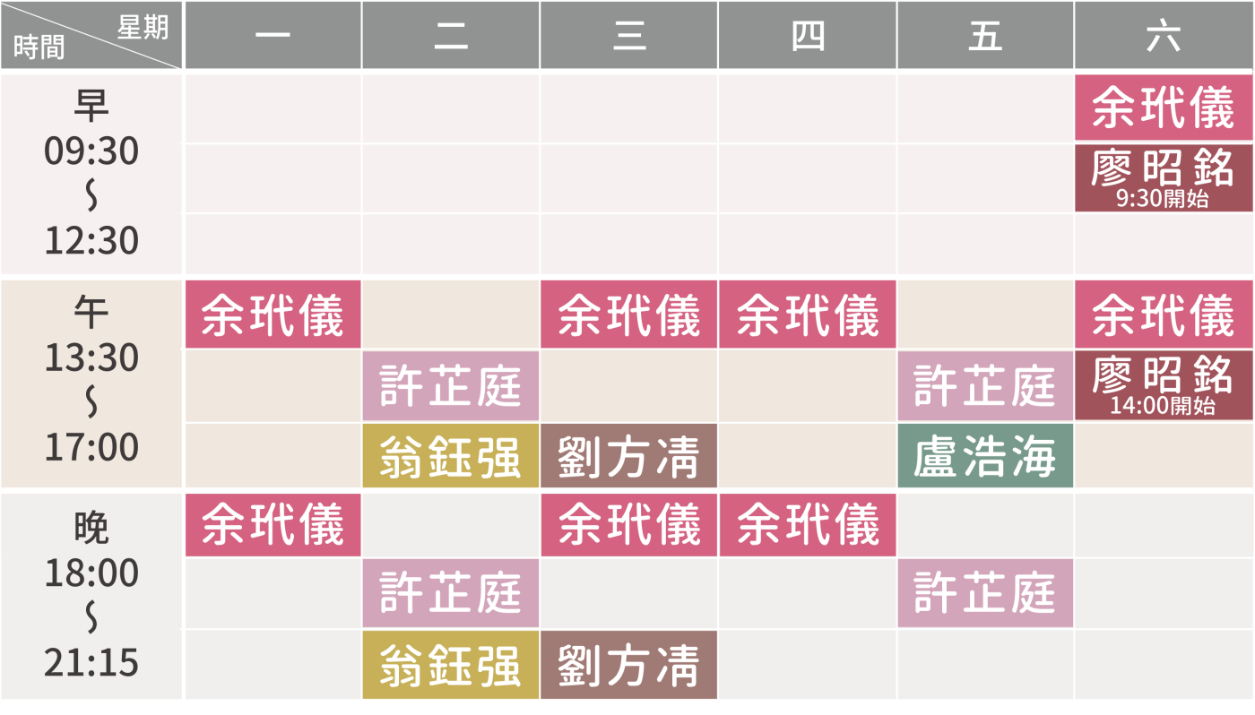 - 預約時間是就診時間的概抓參考值,實際上依每位來賓的醫療處置情況,看診進度會有所不同。醫師們都會盡力控制時間,尚祈諒解。