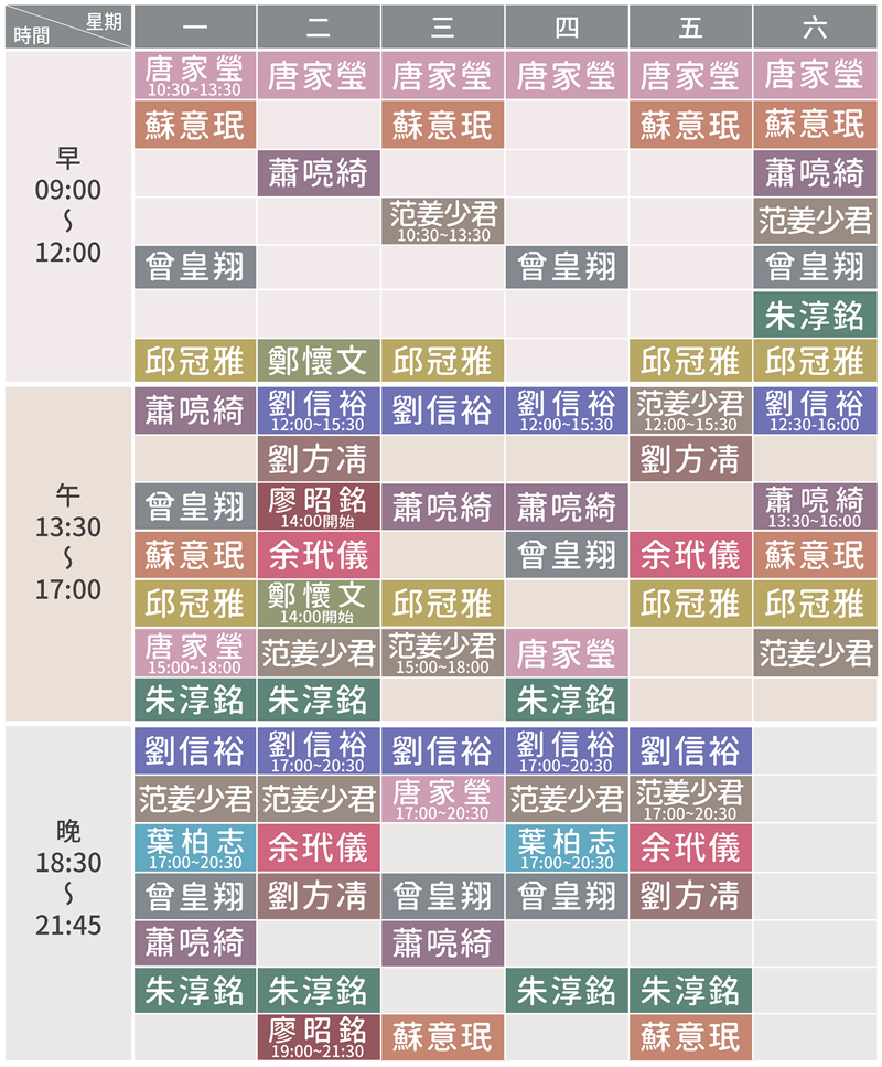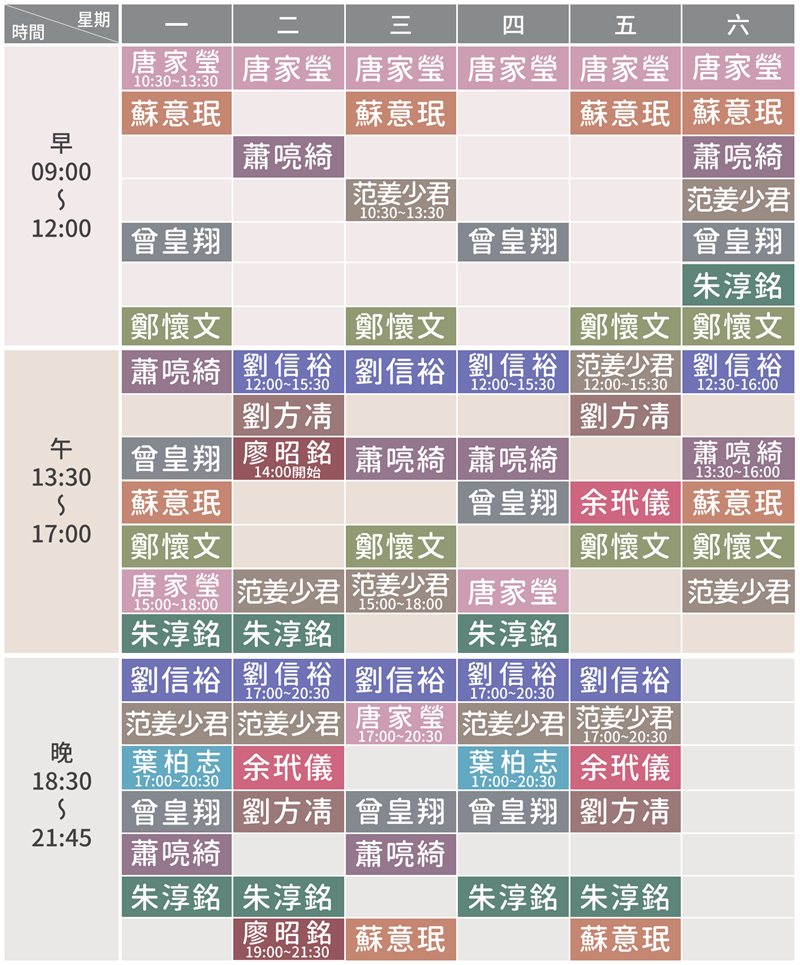 - 預約時間是就診時間的概抓參考值,實際上依每位來賓的醫療處置情況,看診進度會有所不同。醫師們都會盡力控制時間,尚祈諒解。