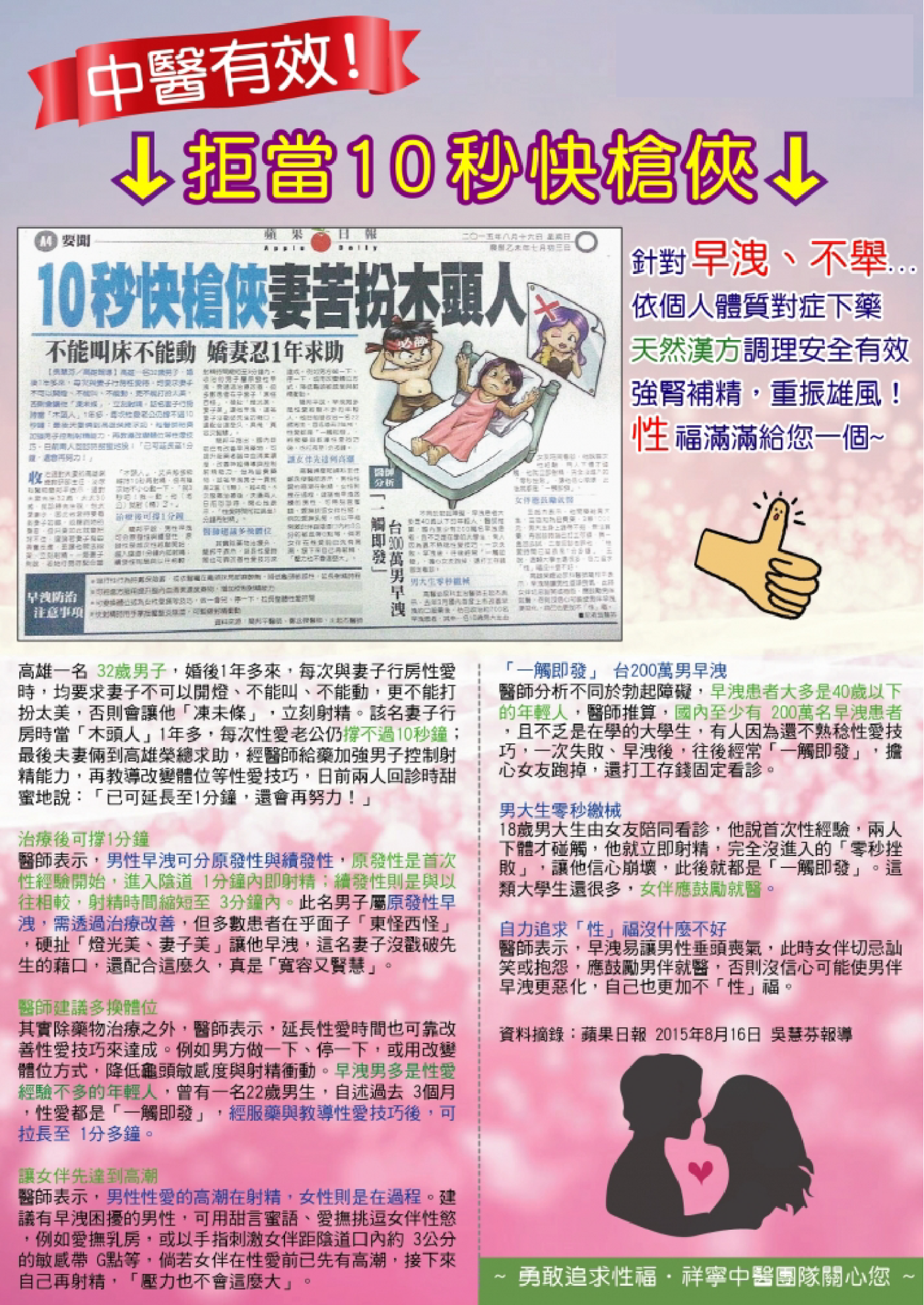 你是早洩快槍俠?別擔心,中醫可治!