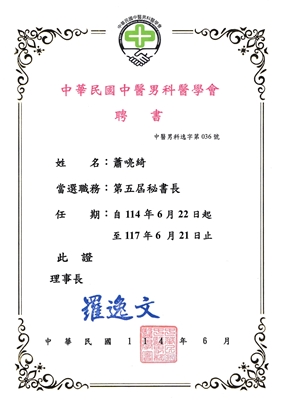 - 衛生福利部-中醫內科、婦科臨床醫學指導教師