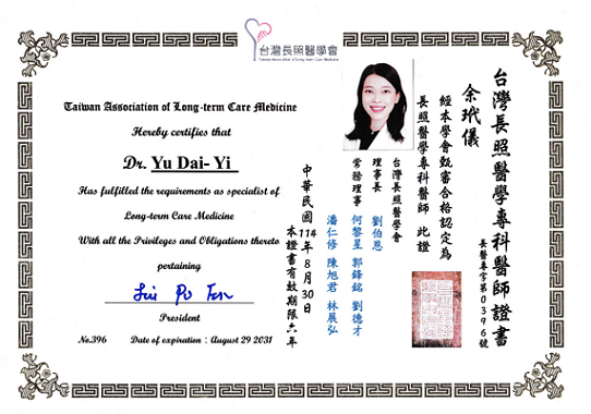 - 台灣長照醫學會專科醫師