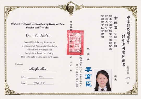 - 中華針灸醫學會專科醫師