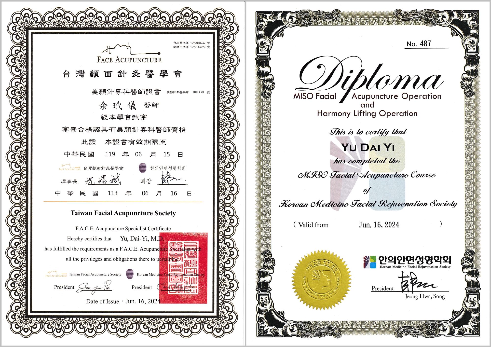 - 台灣顏面針灸醫學會美顏針專科醫師